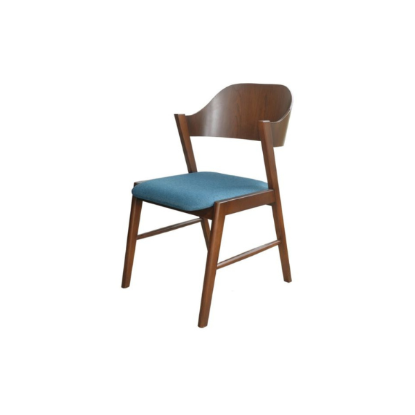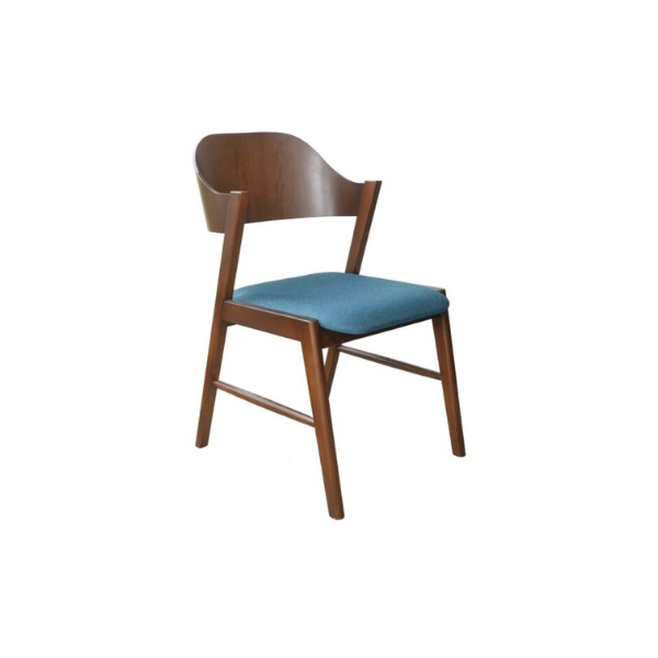 เก้าอี้ LOFTIER สีวอลนัทเบาะผ้าสีฟ้า