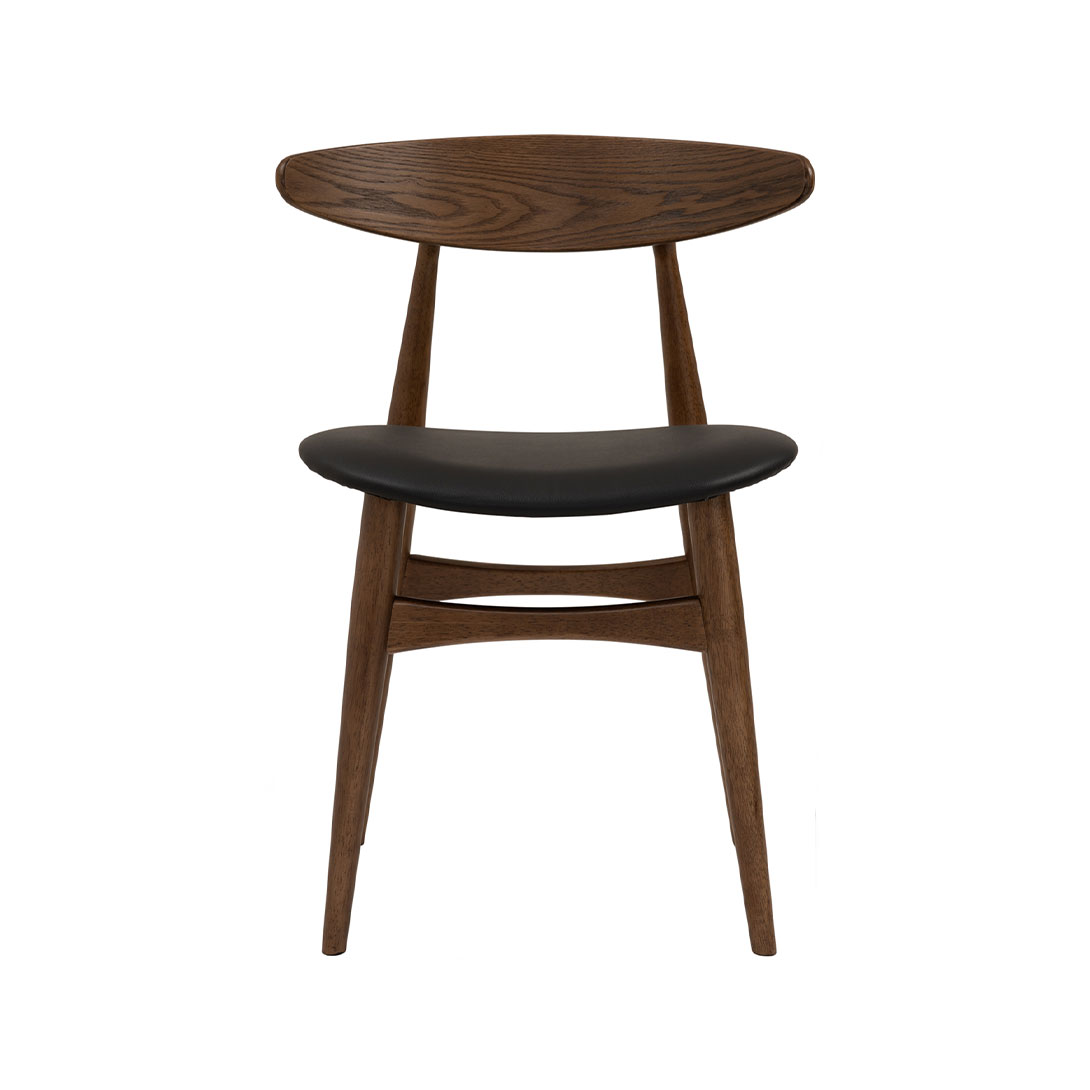 เก้าอี้ รุ่น TRICIA ไม้โอ๊คน้ำตาล เบาะหนังสีดำ